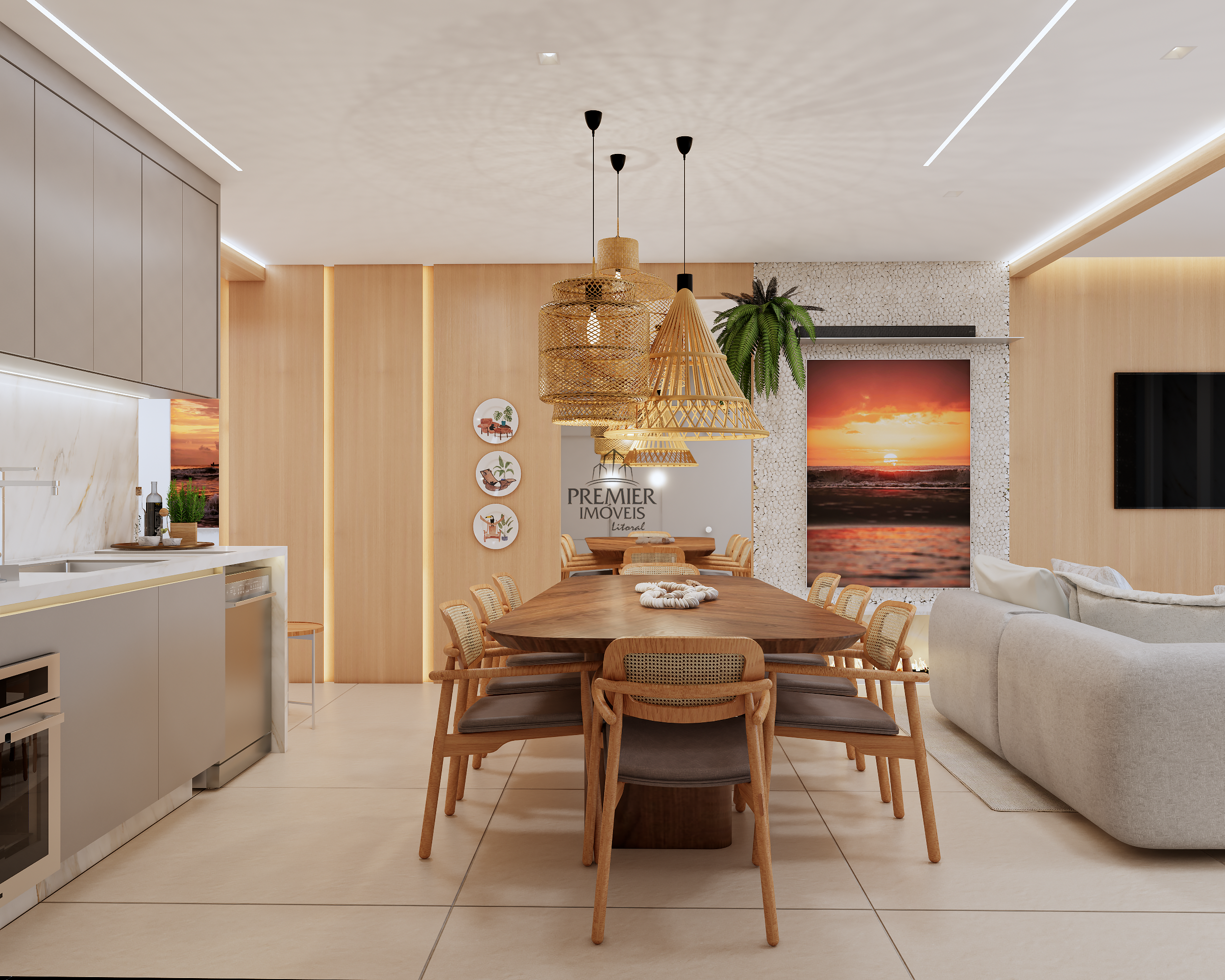 * Ambientes integrados com excelente aproveitamento da iluminação natural