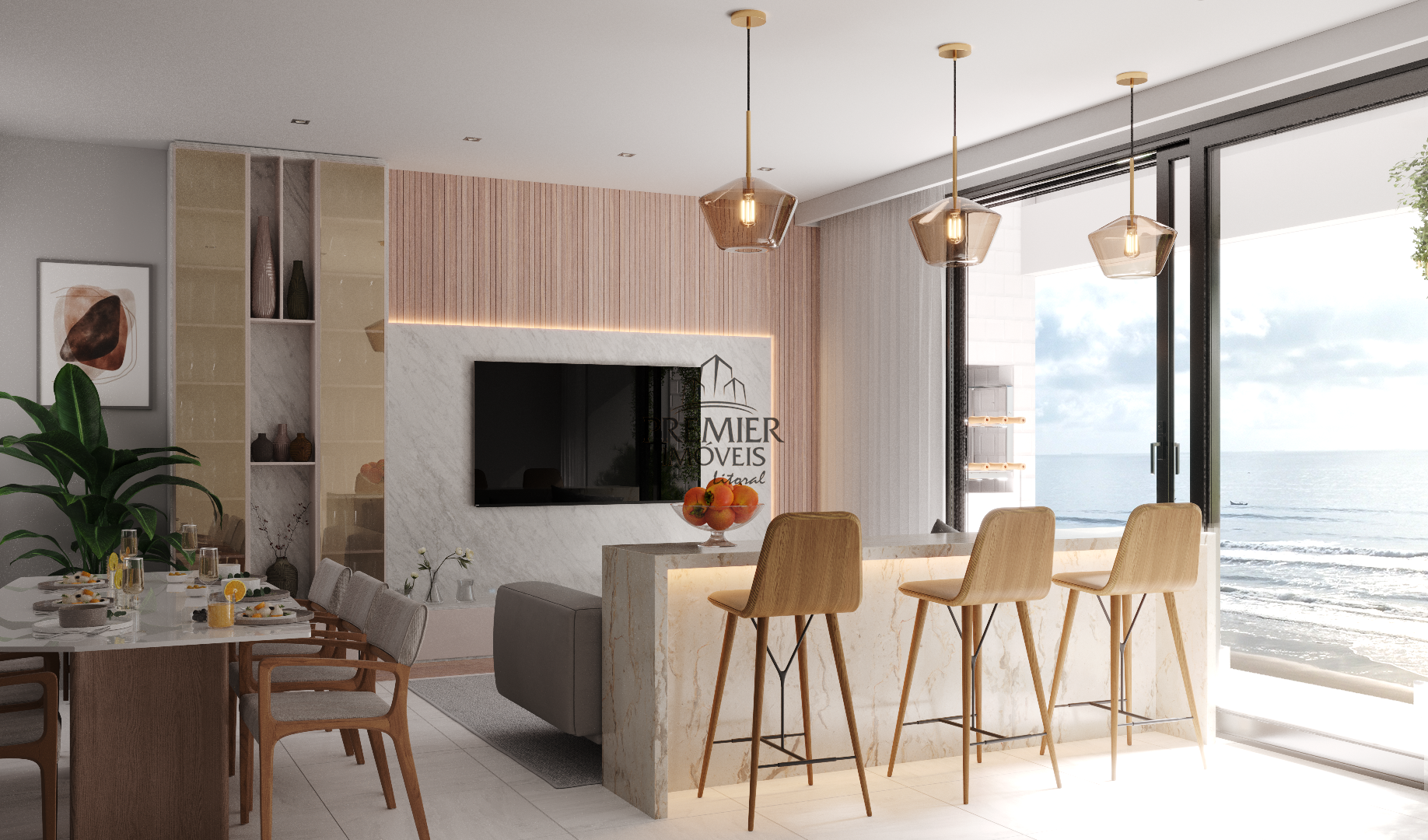 * Sala e cozinha em conceito aberto