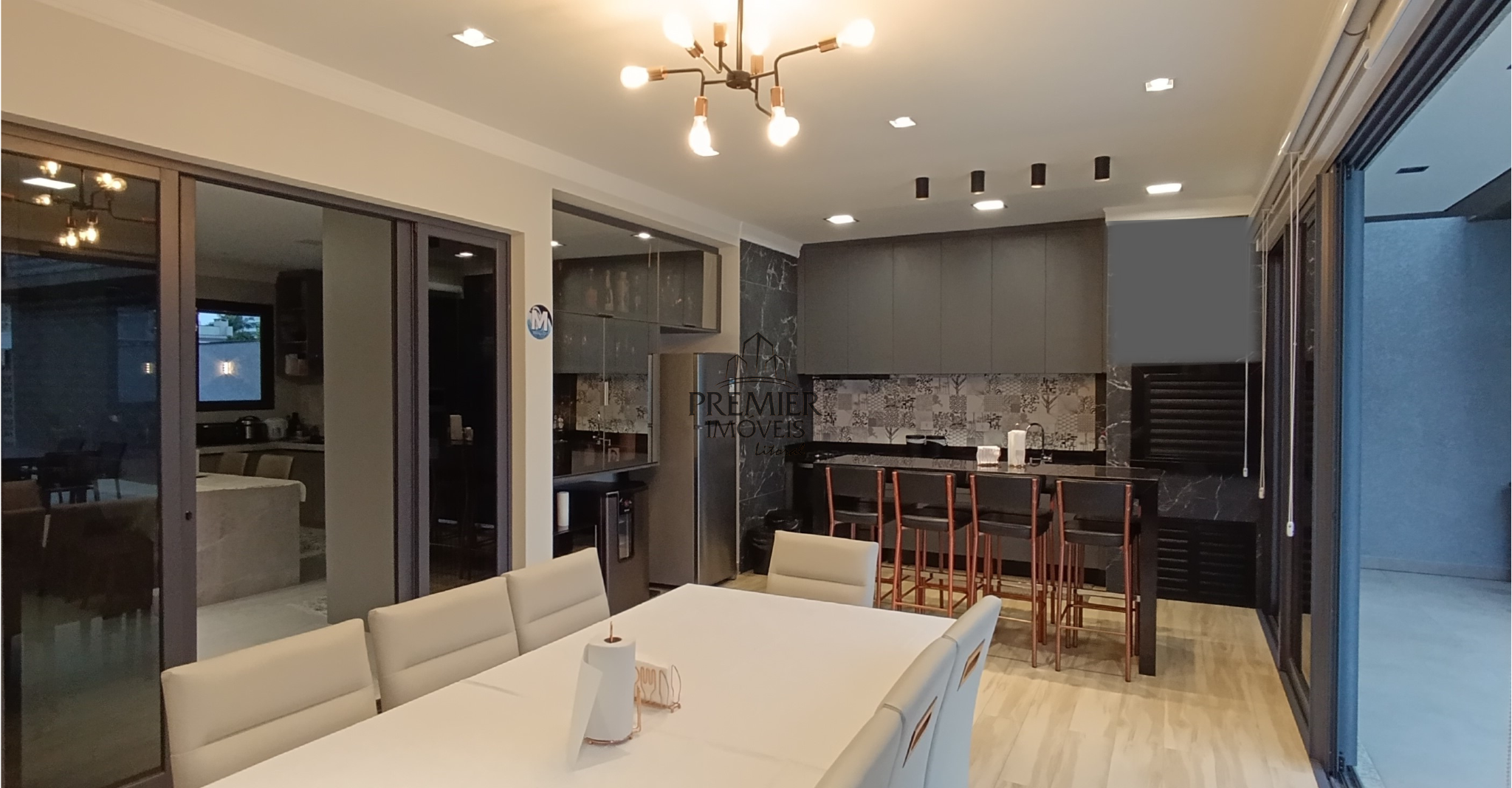 * Sala de Estar: espaçosa, com pé direito duplo e portas de vidro panorâmicas,
